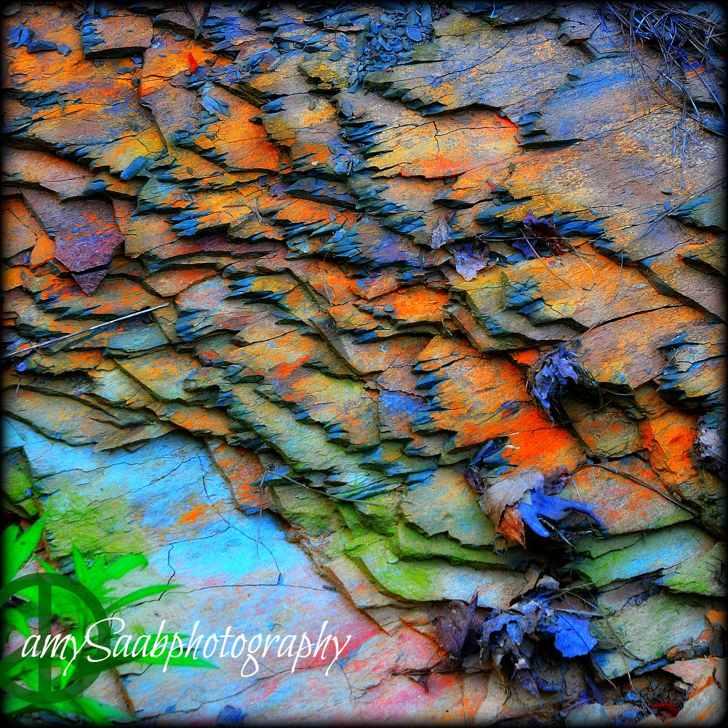 All the colors are present when I took the photograph, but when up on my computer I saw a rainbow of color, so I popped the color up.  Nature makes some beautiful things.slate blue,green orange
