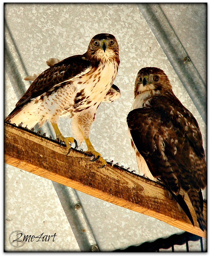 sit in cages outside the Anniston Museum of Natural History. these birds were brought to the sanctuary wing of the museum to heal & to be released, if they recover enough to fly.  i had a staring contest with all of them.  i lost. staring contest broken wings bird sanctuary